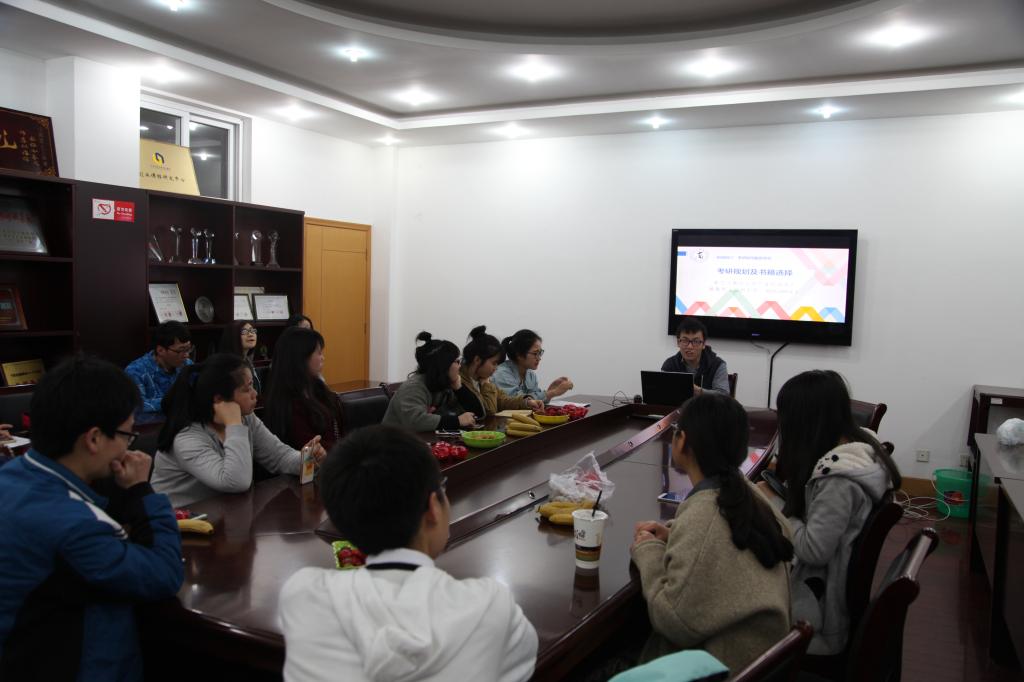 4月6日18:00,来自2012级经济学专业的崔宁和国际经济与贸易专业的游瑾珲在91制片厂 412与13级,14级意向参加考研的同学进行了一场关于考研规划与书籍选择的交流。此次交流是91制片厂 “研途同行”考研指导服务系列活动之一。