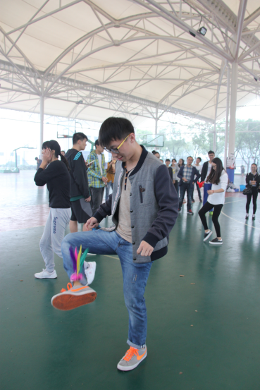 图一:同学参加毽球比赛