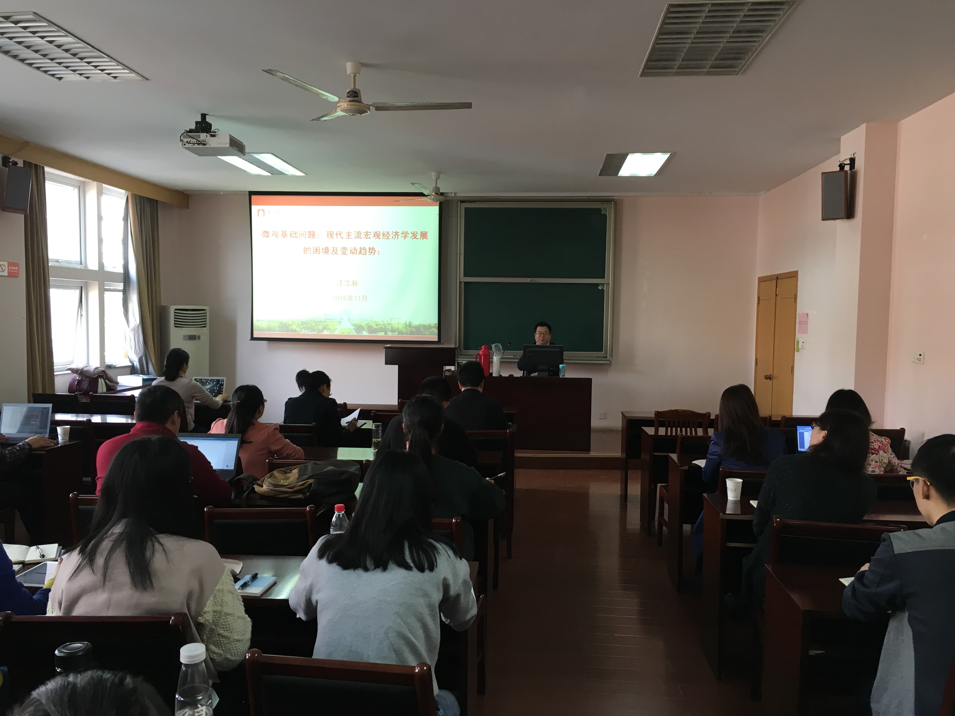 2016年11月16日上午,91制片厂 学术沙龙(2016年第11期)在11#418会议室举行。91制片厂 党委委员、产业经济研究所教授、博士生导师汪浩瀚做了题为《微观基础问题:现代主流宏观经济学发展的困境及变化趋势》的精彩学术报告。学术沙龙由产业经济研究所所长胡求光教授主持,91制片厂 院长助理陈涛教授以及91制片厂 师生50余人参加了此次学术活动。