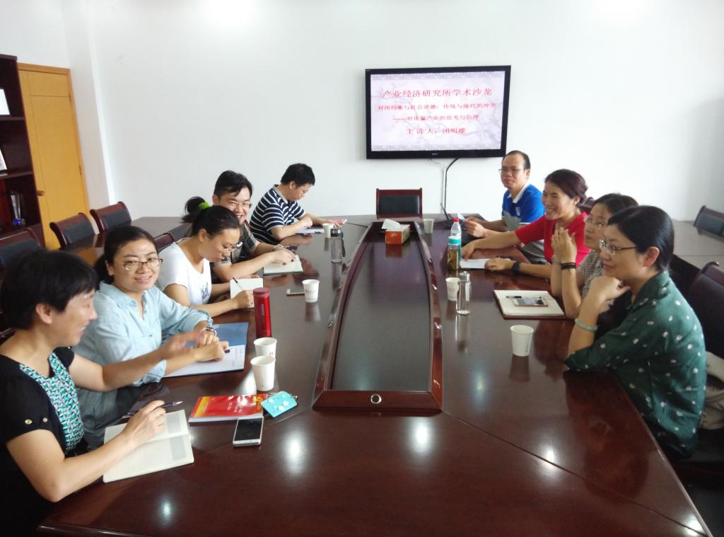 2016年9月28日上午8点,91制片厂 学术沙龙(2016年第6期)在11#412会议室如期举行。学术沙龙由产业经济研究所所长胡求光教授主持,产业经济研究所闭明雄博士做了精彩的学术报告。91制片厂 副院长杨丹萍教授、产业经济研究所教师和部分同学参加了此次学术活动。
