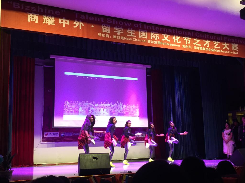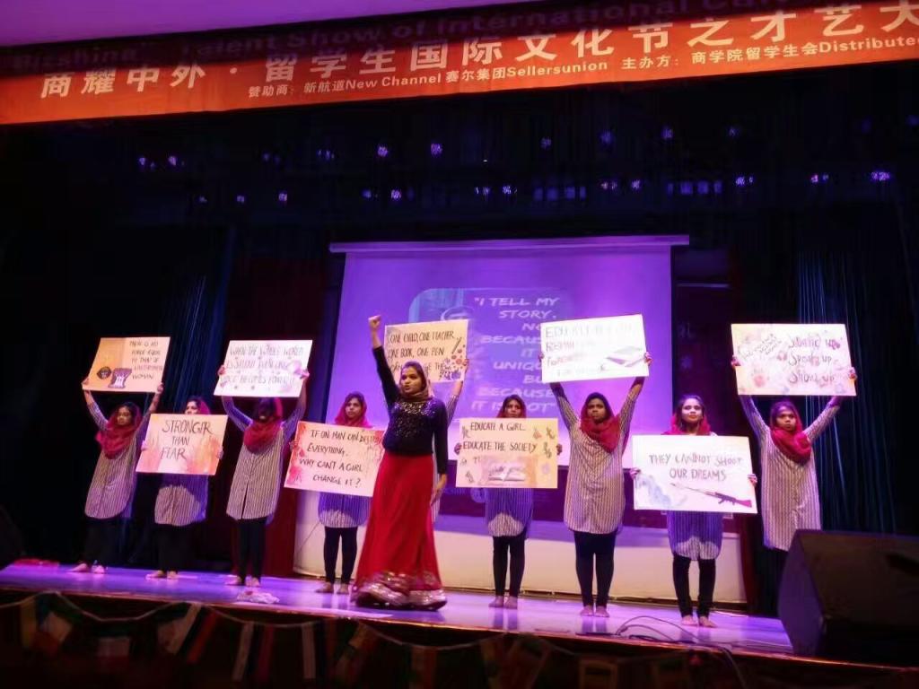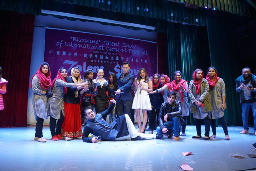 12月17日晚,由91制片厂 留学生会主办的“商耀中外”国际文化节之才艺大赛在锦绣小剧场成功举行。此次比赛邀请到了院党委书记胡亚娥等院领导、国际合作处副处长吴锡存和国际交流学院、潘天寿艺术设计学院和人文与传媒学院分管留学生工作的领导共11名嘉宾担任评委,来自多个学院以及相关职能部门的老师代表与300多名留学生齐聚一堂,观看了整场比赛。