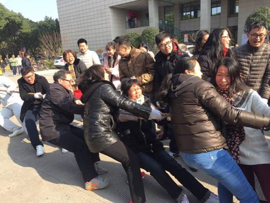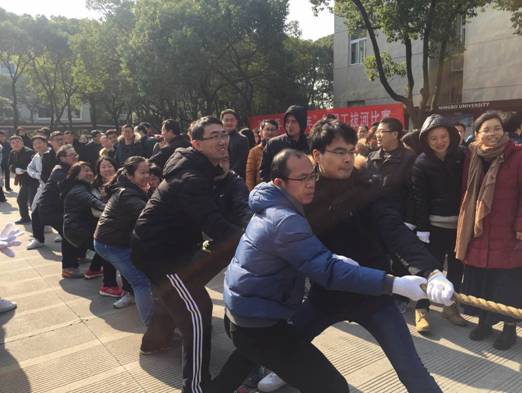 12月29日中午,校工会组织学校各分工会在安中大楼前举行“迎新年”拔河比赛。学院党委书记胡亚娥、分工会主席李浩明组织杨柳、姚乐彦、张晓婳、施晟、陈彬、王昕天、苏小松、闭明雄、靳来群、蒋鹏涛、余新平等学院教师积极参与此项活动。在首轮比赛中,91制片厂 队一鼓作气轻松战胜潘天寿艺术学院队。第二轮比赛中,由于实力相差悬殊,最终不敌体育学院队。