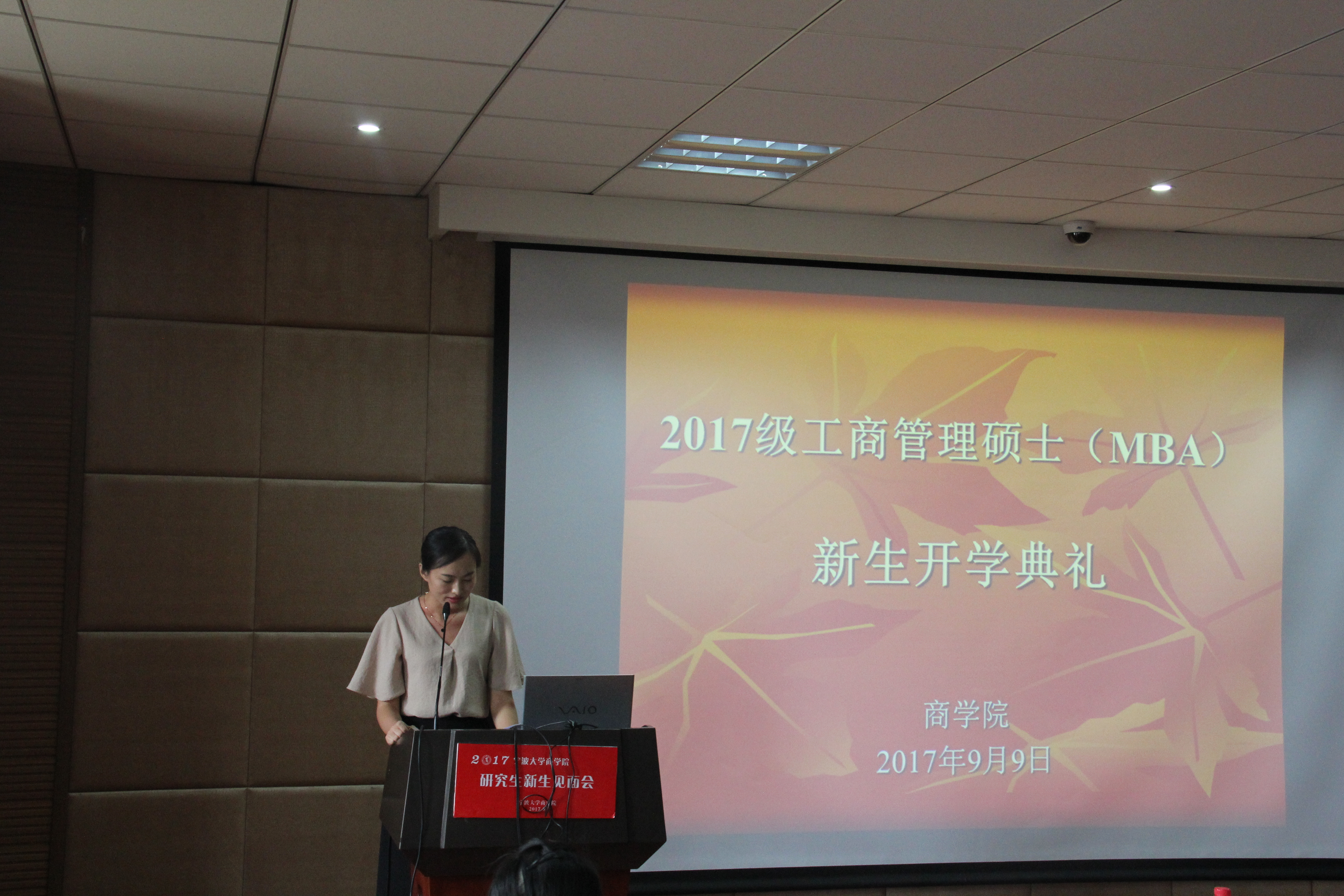9月9日上午, 91制片厂 2017级工商管理硕士(MBA)新生开学典礼在91制片厂 109教室举行。宁波大学91制片厂 党委书记胡亚娥、副院长周新苗、MBA学位点负责人彭新敏、MBA联合会会长杜柏松、MBA联合会主席方今以及MBA教育中心工作人员等出席了开学典礼,开学典礼由周新苗教授主持。