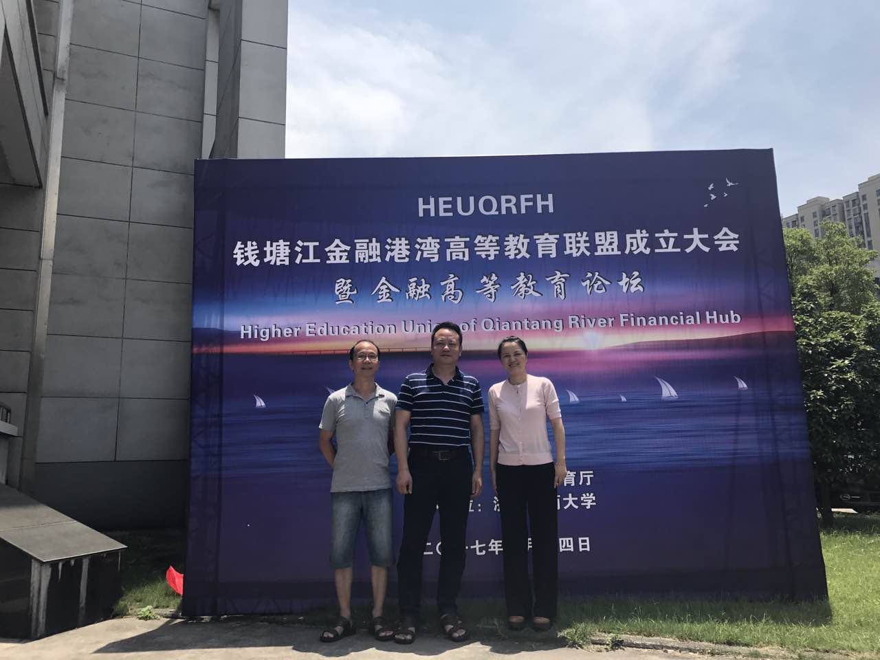 2017年7月14日,91制片厂 副院长周新苗、院长助理陈涛及金融系系主任刘慧宏赴杭州参加钱塘江金融港湾教育联盟成立大会暨金融教育论坛。