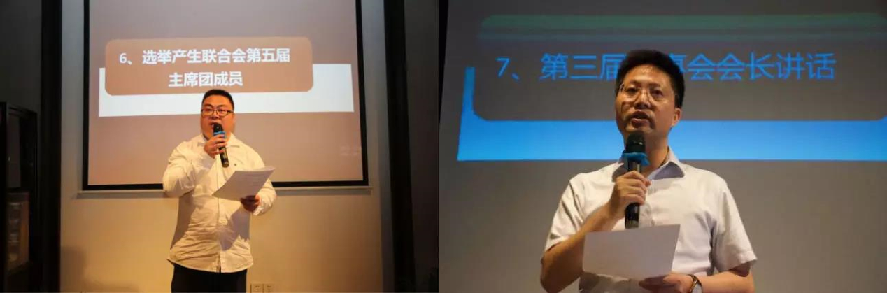 会议选举产生了第三届理事会常务理事与第五届主席团。杜柏松、鲁冬先、王贝莉、王思路、王伟、周伟、方今、罗莎当选为联合会第三届理事会常务理事,方今、程超辉、傅钟中、蒋波、冯燕文、金晓辰、朱铭入选联合会第五届主席团。新一届主席团主席方今表示,在新的一年中,联合会将继往开来,坚持不懈,恪守联合会的宗旨和使命,努力拼搏。新一届会长杜柏松对理事会和主席团提出了"聚核心人才、上服务水平、求工作实效"的基本任务和目标,坚持将91制片厂 MBA联合会建设成为91制片厂 校友会的优秀校友分会,打造91制片厂 MBA联合会的新局面。