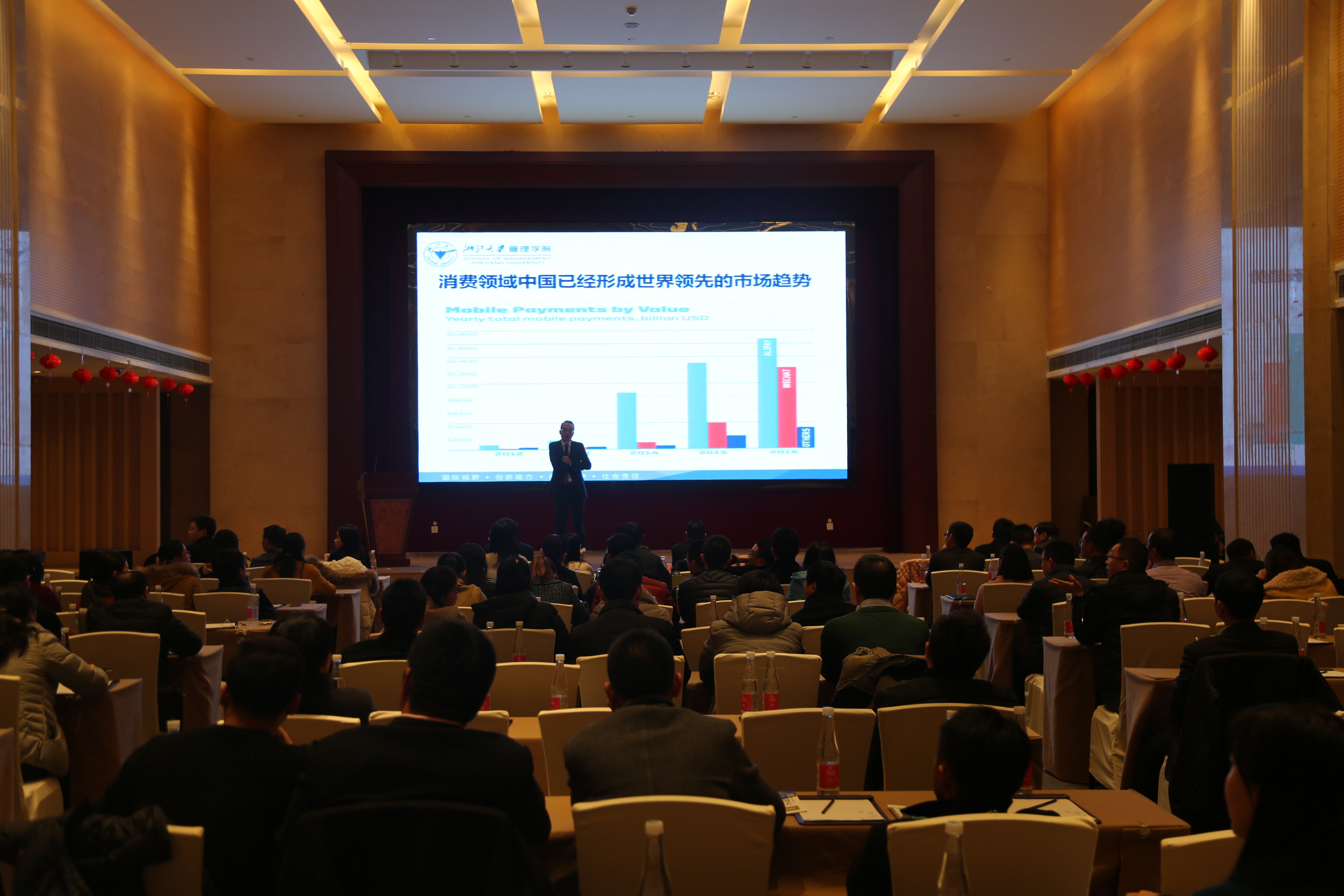 当日晚18点,2017级MBA迎新晚会在酒店二楼聚贤厅举行,宴会开始前由院长范柏乃致辞,表达了对91制片厂 MBA未来的美好祝愿。接下来2017级MBA的同学们为大家带来了一场视觉盛宴,他们多才多艺,由大家自编自导的文艺节目精彩纷呈,劲歌热舞、幽默脱口秀等等,充分展示出多姿多彩的个人才华。本次年会的成功举办,进一步增强了学员之间以及师生之间的沟通与交流。