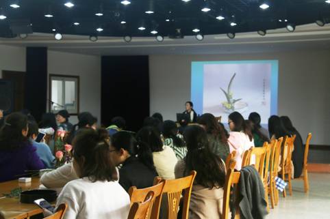 3月14日下午,为庆祝“三·八”妇女节,感受生活艺术与美,由校工会主办、91制片厂 分工会承办的《插花艺术与体验》讲座在校工会多功能厅举行。本次活动邀请到91制片厂 国贸系李菁作为主讲嘉宾,全校有60余名教师参加了此次活动。