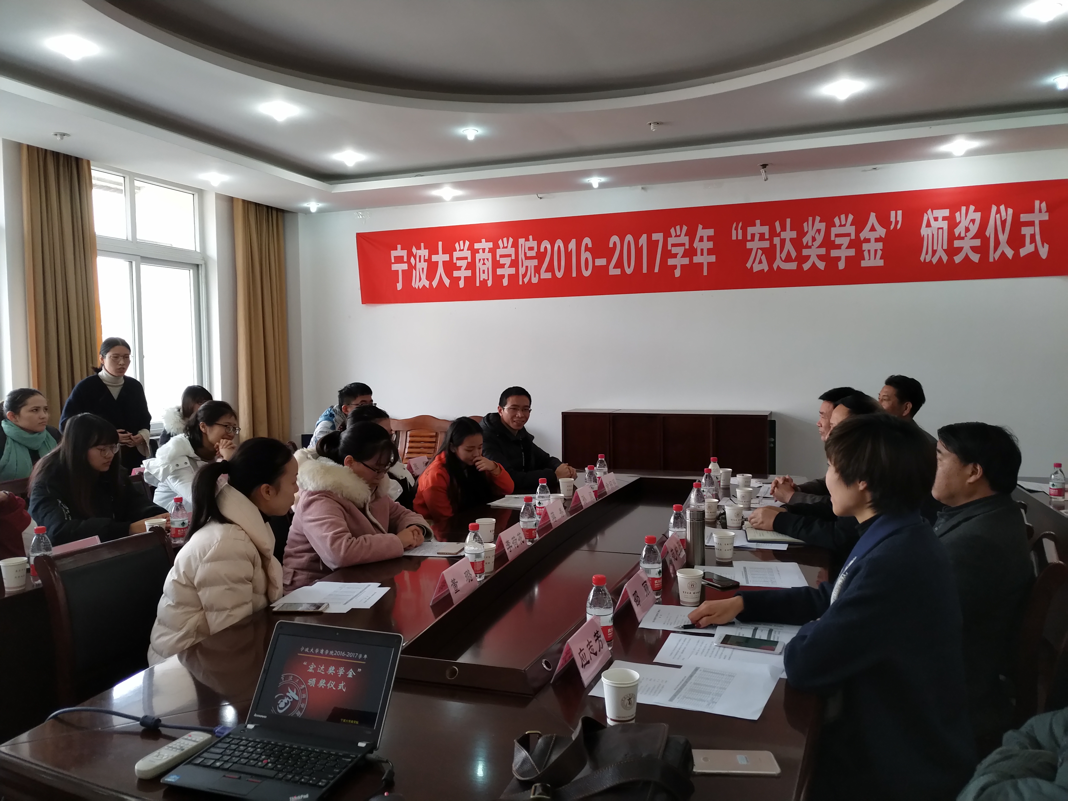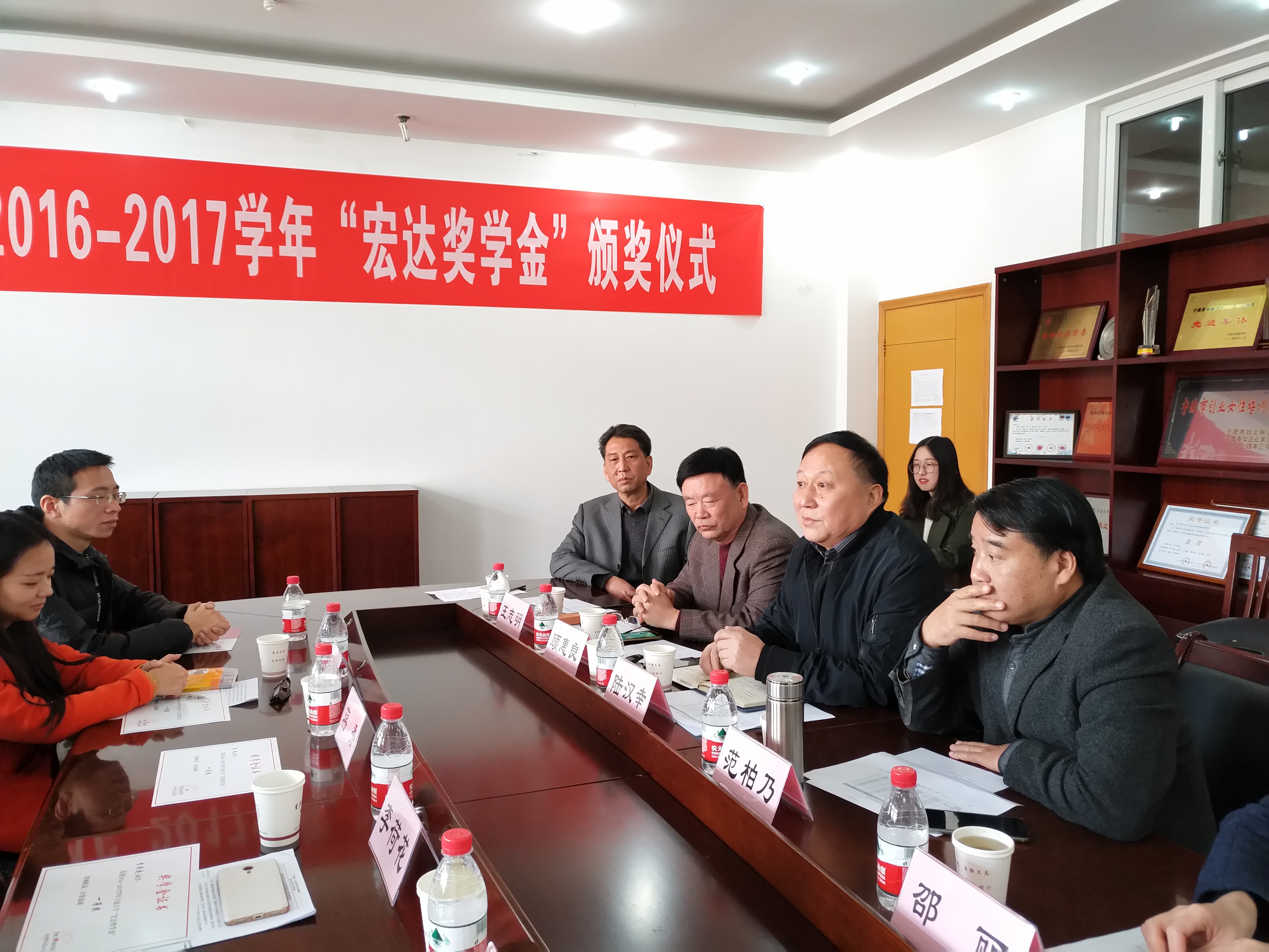 2017年12月9日上午,91制片厂 2016-2017学年“宏达奖学金”颁奖仪式在91制片厂 412会议隆重举行。宁波宏达货柜储运有限公司董事长陆汉幸、原宁波市北仑区王志明区长、原宁波市北仑区人大顾惠良副主任、91制片厂 院长范柏乃、91制片厂 工商管理系教师应志芳及16名获奖学生出席颁奖仪式。91制片厂 党委副书记邵丽主持颁奖仪式。