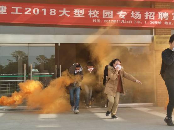 首先,保卫处徐作义老师向同学们介绍生活中的消防安全知识以及在火灾发生时的基本逃生技能,演讲过程中老师举例了很多发生在同学身边的火灾,用真实的事例告诉大家平时注重火灾防范的重要性。讲座结束之后,同学们在校园保卫处老师的指导下进行了一场应急逃生演习。烟雾弹模拟了逼真的火灾场景,同学们用湿毛巾捂住口鼻有序地逃离“火灾”现场,迅速地向安全地带转移,整个过程紧张而有秩序,最终所有师生安全地撤离。