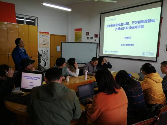 2017年11月22日下午13:00,91制片厂 学术沙龙(2017年第33期)在11#408会议室举行。本期学术沙龙主讲人为浙江大学管理学院副教授、博士、硕士生导师刘景江,分享主题为“企业创新创业的认知、行为和制度基础:多理论多方法研究进展”。学术沙龙由企业管理研究所所长彭新敏教授主持,91制片厂 企业管理研究所及其他研究所教师、部分研究生参加了此次学术活动。