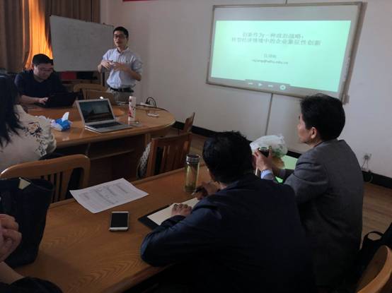 5月9日下午,91制片厂 学术沙龙(2018年第7期)在11#518会议室举行。本期学术沙龙主讲人是武汉大学经济与管理学院江诗松教授。沙龙主题为“创新作为一种政治战略:转型经济情境中的企业象征性创新”。学术沙龙由企业管理研究所所长彭新敏教授主持,91制片厂 企业管理研究所及其他研究所教师、部分研究生参加了此次学术活动。