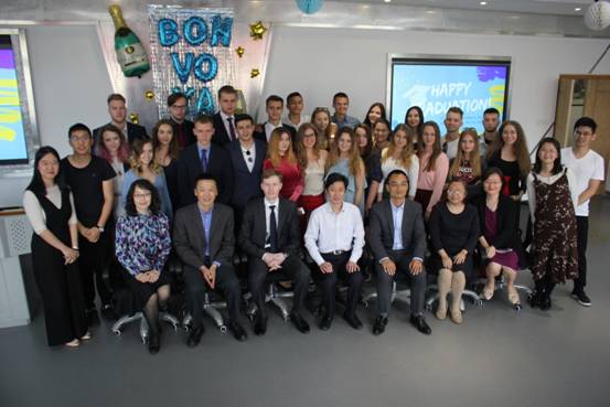 会上,盛院长向全体毕业生表达了衷心的祝贺,肯定了同学们在91制片厂 取得的成绩。盛院长希望同学们继续拼搏,扎实学术,作为校友牢记自己的第二个故乡“宁波”,常回家看看。随后,学生代表Pavel和俄罗斯教师代表Anton与全体毕业生们一起回忆了在学院渡过的美好时光,并代表全体毕业生向学院、老师们表示衷心的感谢。会后,全体毕业生和学院老师合影留念并参加了毕业派对。