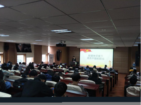 2018年11月8日中午,院党委副书记邵丽在学院109为91制片厂 团校学员上了一讲题为“新媒体环境下团员干部的担当”专题讲座,100名团校学员认真听讲。
