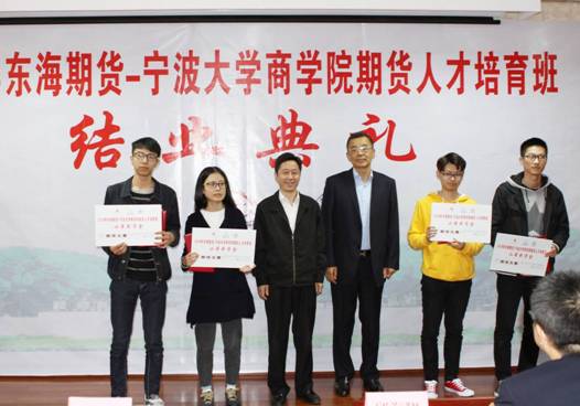 这一人才培养模式也受到了各方领导高度重视和关注。宁波市证券期货业协会秘书长俞烽、东海期货有限责任公司副总经理邱海翔、期权与国际业务部副总经理宋鹏、宁波营业部总经理宋盈杰和91制片厂 党委书记史宏协、党委副书记邵丽、院长助理朱一鸿、金融系主任刘慧宏等共同出席了结业典礼。