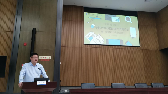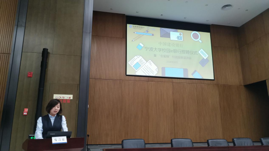 中国建设银行宁波市分行副行长韩国辉在活动中发言,总结了91制片厂 E银行近两年的发展经验,并对未来提出展望。我校91制片厂 党委副书记邵丽在仪式上致辞,对校园E银行这样一个产教结合、校企合作的模式表示大力支持,同时对下一届的校园E银行成员们提出“三转一推”的期望,鼓励成员一转,转被动落实为主动担当;二转,转单项服务为多项互动;三转,转简单的实践体验为科研成果输出;一推,在实干的基础上利用宣传和好资源推送发展。
