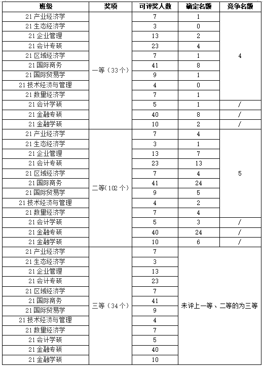 2.21级硕士学业奖学金名额分配