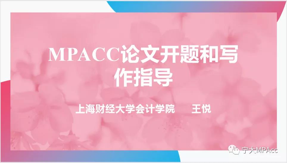 2020年8月16日上午9:00,由宁波大学商学院会计专硕教育中心主办的主题为《MPAcc论文开题与写作指导》的讲座顺利召开,本次讲座很荣幸地邀请到了上海财经大学会计学院王悦副教授作为主讲嘉宾,由我院会计专硕执行主任陈翼然老师主持,因疫情原因,本次会议采用腾讯会议平台进行直播,会计专硕50余名师生参与此次讲座。