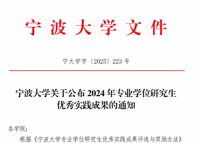 获奖 | 我校四名MIB学生获评2024年宁波大学研究生优秀实践成果