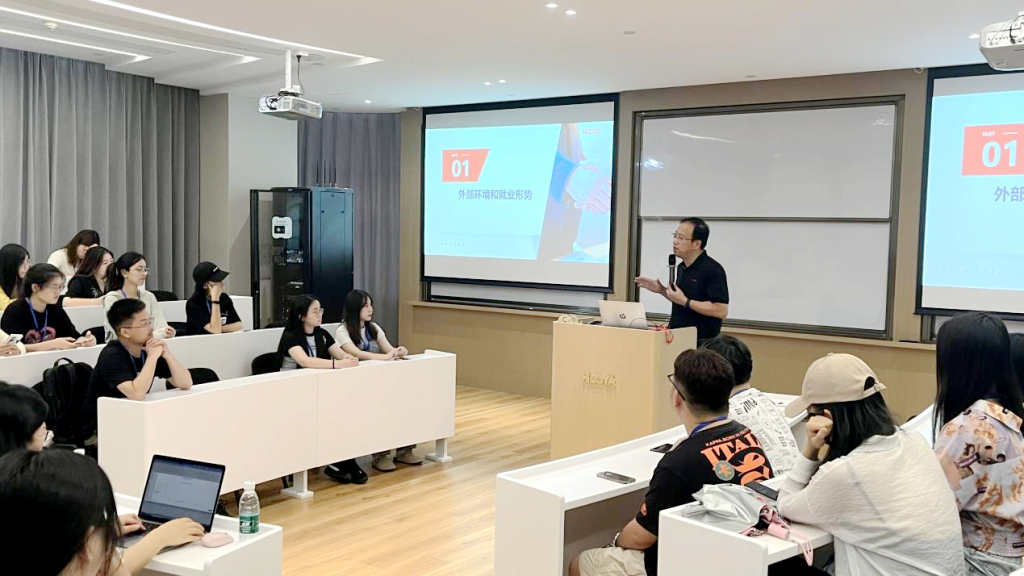 在参观过程中,豪雅集团人力资源副总监刘大伟先生向到访学生介绍了公司员工风采、文化体系、员工生涯发展路线、党建风采、发展历程。在谈到售后服务时,刘副总监解释到,除了智能化的物流配送系统,豪雅更注重消费者体验,包括到达目的地之后,快递人员需联络客户完成产品当面交付工作。结合客户需求,豪雅物流还可以提供定时定点送货、室内送货、送货、上楼安装调试等个性化服务,让产品供应链、物流供应链具备智能之星,承载人文温度。