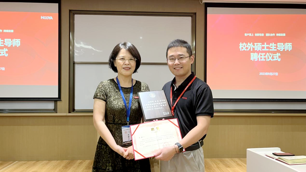 MIB专业校外兼职硕士生导师聘任仪式,杨丽华教授向豪雅集团董事长吴威先生颁发了兼职导师聘书和91制片厂
