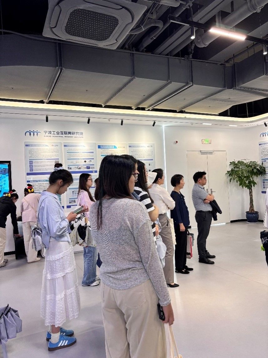 2025年4月18日,作为《国际商务》课程理论与实践相结合的现场教学活动,我校2024级国际商务硕士研究生在导师团队带领下,赴宁波工业互联网研究院开展参观学习活动。本次活动以“AI赋能产业,创新驱动发展”为主题,通过实地观摩、互动体验与行业导师交流,让同学们近距离感受人工智能技术在实体经济中的创新应用。
