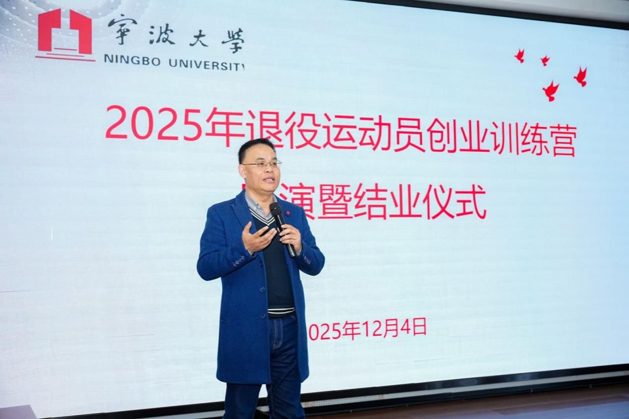 2025年12月4日,由国家体育总局体育基金管理中心主办,中华全国体育基金会资助,宁波大学承办的“2025年退役运动员创业训练营路演暨结业仪式”在宁波大学商学院成功举行。本次活动标志着为期十天的创业训练营正式收官,来自体育界的退役运动员们完成了从“赛场强者”到“创业新人”的华丽转身,在商业路演的舞台上展现了卓越的跨界潜力与创新活力。