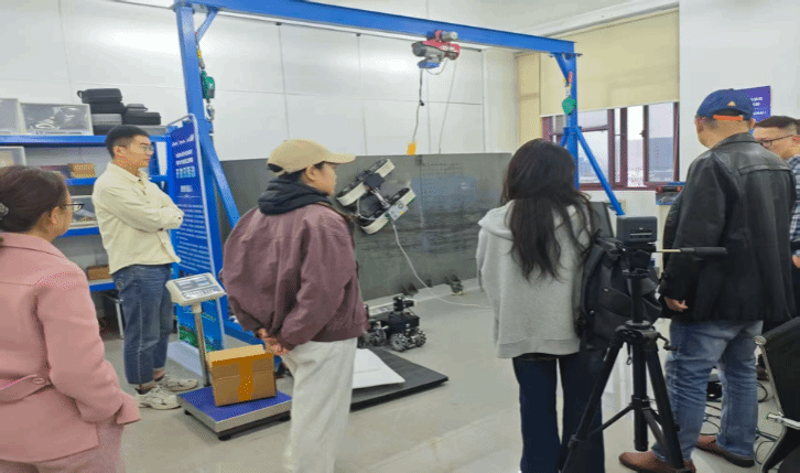 随后,团队还参观了核电检测机器人、铁路锈迹激光清除设备等标志性成果,而话题始终围绕爬壁机器人的优化方向展开。茹浩磊老师结合实际案例,详细拆解了爬壁机器人的技术原理、研发难点及当前应用成效;师生们则立足专业所长,不时驻足提问,既从机械专业角度探讨机器人在续航能力、轻量化设计等方面的改进空间,又以商科视角分析不同行业客户的需求差异、市场竞争格局,并提出针对性的产品定位与推广建议。