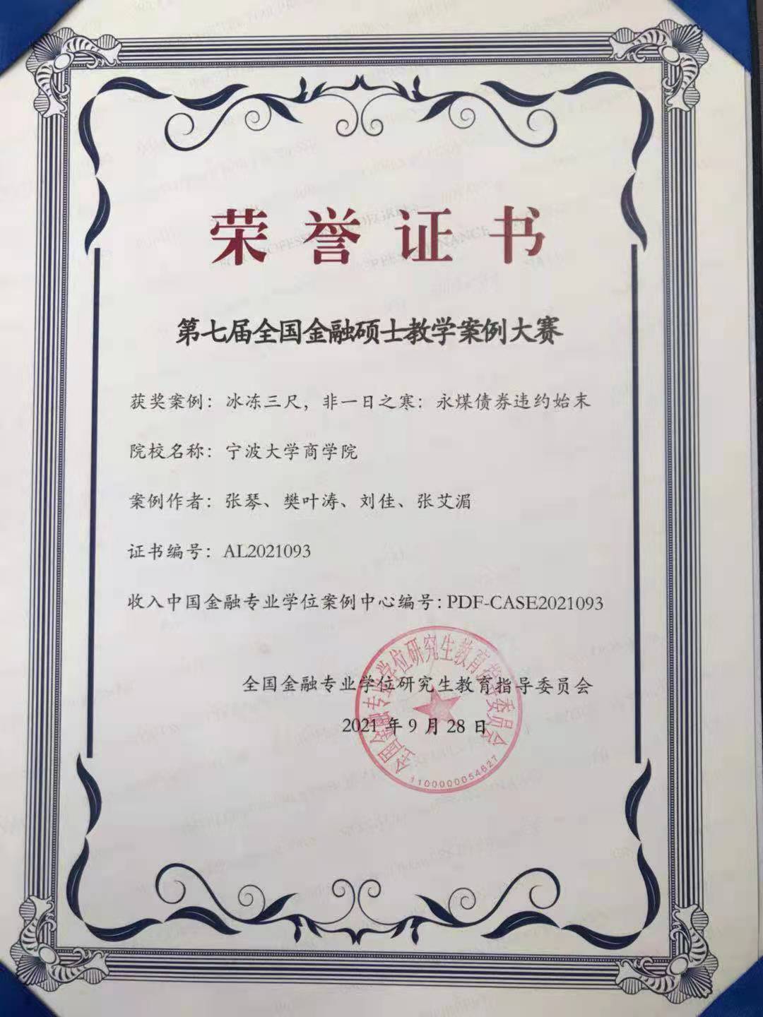 在2021年全国第七届金融硕士教学案例大赛中,商学院金融系张琴教授指导的《冰冻三尺,非一日之寒:永煤债券违约始末》在专家评审中脱颖而出,荣获全国优秀教学案例奖并入选全国金融硕士教学案例库。