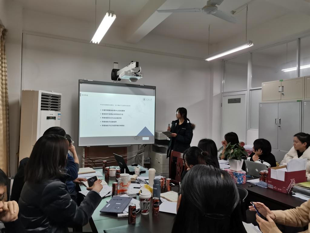接下来,四名案例中心成员分享了有关“第五届中国行动学习论坛”的学习内容。首先,凌璐同学向大家介绍了行动学习这一概念。她提到,所谓的行动学习就是透过行动实践学习,学习者通过对实际工作中的问题、任务、项目的处理,从而达到开发人力资源和发展组织的能力。随后,施佳男同学对国内案例的发展进程做了简要的介绍,并将几类不同的教学模式进行了对比,最终得出结论:案例行动学习能够更好地帮助学生提高分析问题、解决问题的能力。紧接着,周艳同学对案例写作的方法进行了总结。其中她提到,要在日常生活中注重素材的积累,遇到可取的素材要学会及时整理,最好能结合案例写成商业评论。最后,海曦同学提到,要想在行动学习这一思想下开发管理案例,就必须要分行业、分区域进行开发,并且要有长期导向。一篇好的案例并不是一蹴而就的,而是经过反复打磨、推敲才能完成,大家必须要有足够的耐心。