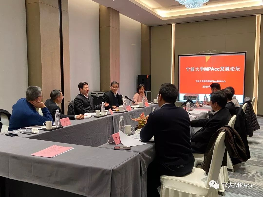 2020年1月8日下午,宁波大学商学院MPAcc发展论坛顺利举行。商学院金祥荣院长、史宏协书记、陈涛副院长、MPAcc教育中心主任邱妘教授及原宁波市审计局局长郑建飞、宁波世明会计师事务所董事长李钢、银亿集团常务副总裁张明海、雅戈尔副总经理兼董秘刘新宇、浙江省海港投资运营集团财务部主任金国平等参加此次论坛。论坛由MPAcc教育中心执行主任陈翼然主持。