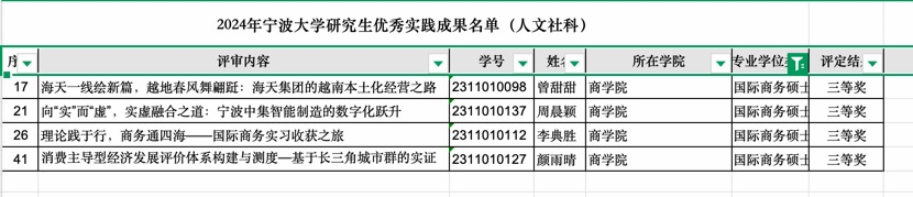 获奖 | 我校四名MIB学生获评2024年宁波大学研究生优秀实践成果