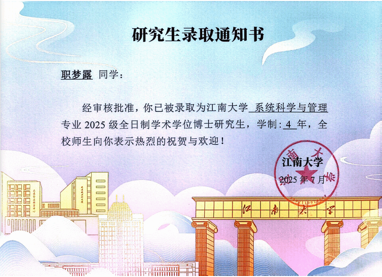 在此特向5名同学表示热烈祝贺,期待他们在博士阶段继续秉持钻研精神,在学术道路上再创佳绩!