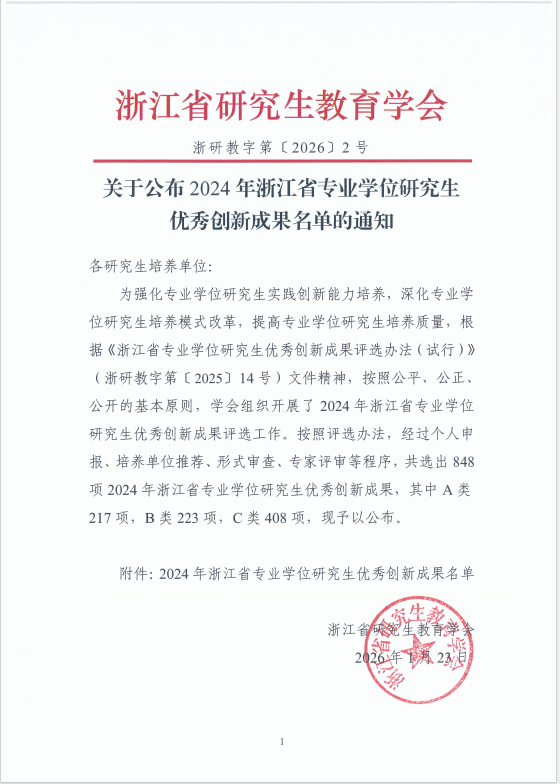 日前,浙江省研究生教育学会公布了2024年浙江省专业学位研究生优秀创新成果获奖名单。我校2023级MIB曾甜甜同学的实践报告《海天一线绘新篇,越地春风舞翩跹:海天集团的越南本土化经营之路》获评B等成果,周晨颖同学的实践报告《向“实”而“虚”,实虚融合之道:宁波中集智能制造的数字化跃升》、李典胜同学的实践报告《理论践于行,商务通四海——国际商务实习收获之旅》获评C等成果。