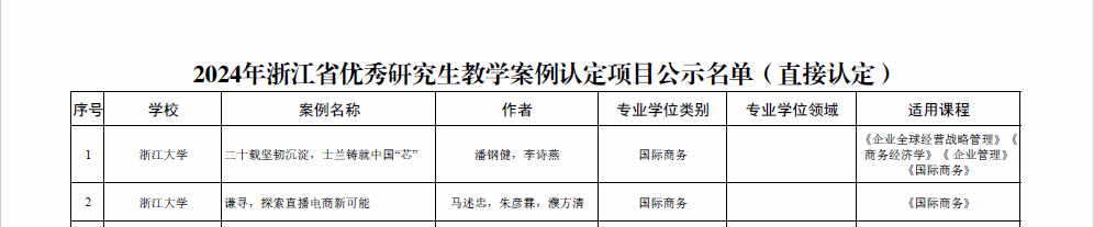 成果认定 | 我校MIB学位点专职教师多项案例成果获2024年浙江省优秀研究生教学案例认定