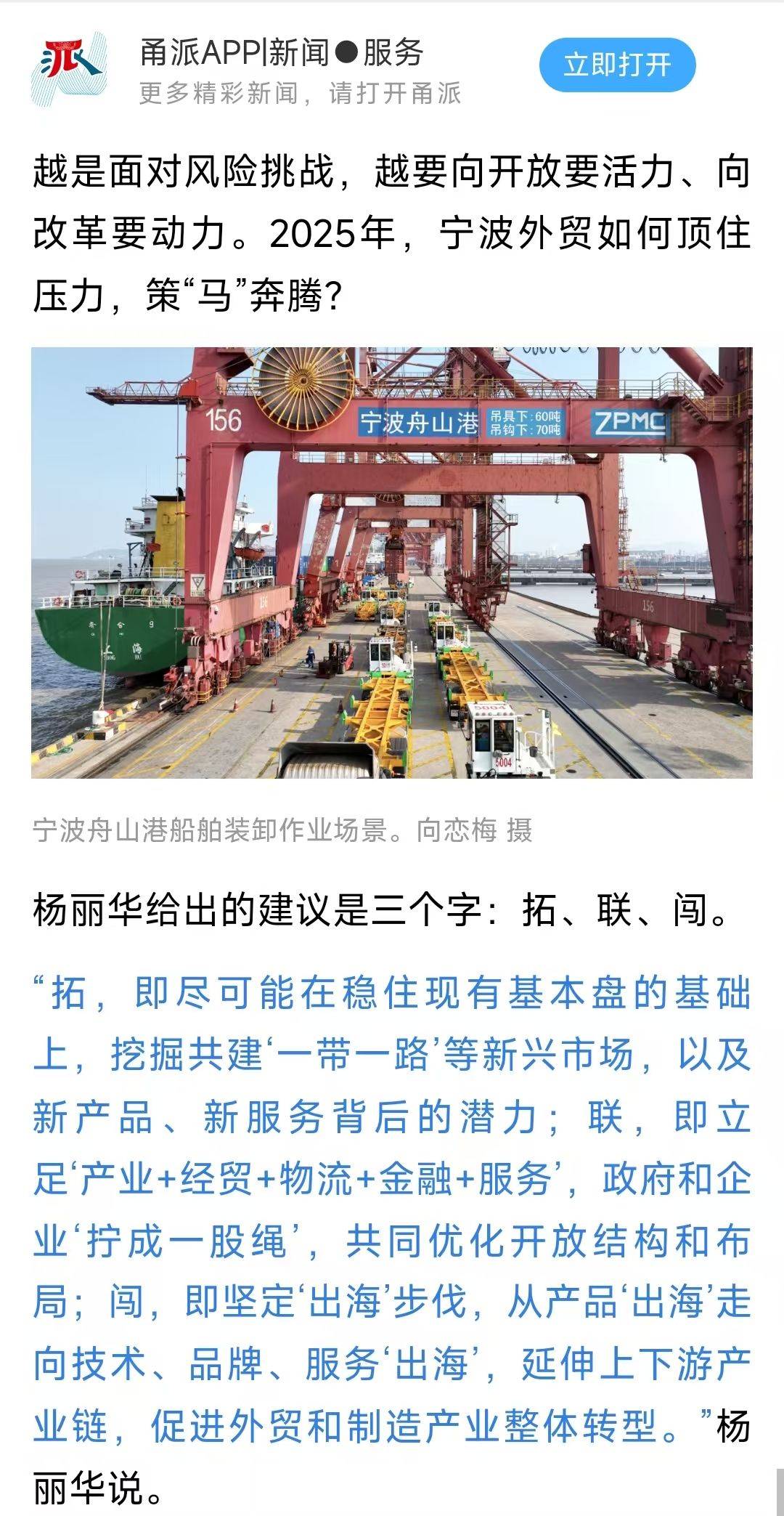 媒体发声 | 我校MIB学位点负责人杨丽华教授在甬派APP新闻平台为宁波外贸发展建言