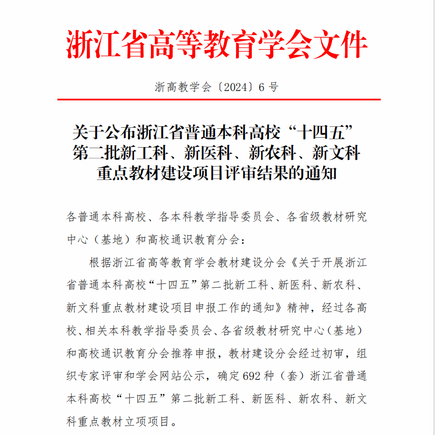 教材建设 | 我校MIB教师获浙江省普通本科高校“十四五” 第二批新工科、新医科、新农科、新文科 重点教材建设项目立项