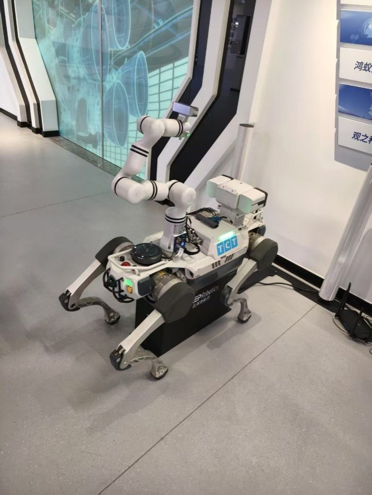 进入展馆内部,研究院讲解员以“技术进化史”为主线,系统介绍了研究院在工业互联网领域的发展历程与核心成果。在展厅内,智能大棚农业系统通过传感器实时监测温湿度、光照等数据,结合AI算法自动调节灌溉与通风,实现农作物产量提升30%以上的示范效果;医药智能分拣设备通过机器视觉与机械臂协同,精准完成药品扫码、分类与包装,效率较传统人工提升5倍;最引人注目的智能巡检机器狗,则现场演示了复杂地形下的自主导航、环境监测与异常预警功能,其灵活的运动能力与数据采集效率引发同学们热烈讨论。此外,展厅还展示了智能安防系统、工业大数据平台等多元化产品,全面呈现AI技术在生产、医疗、安防等多领域的渗透与革新。