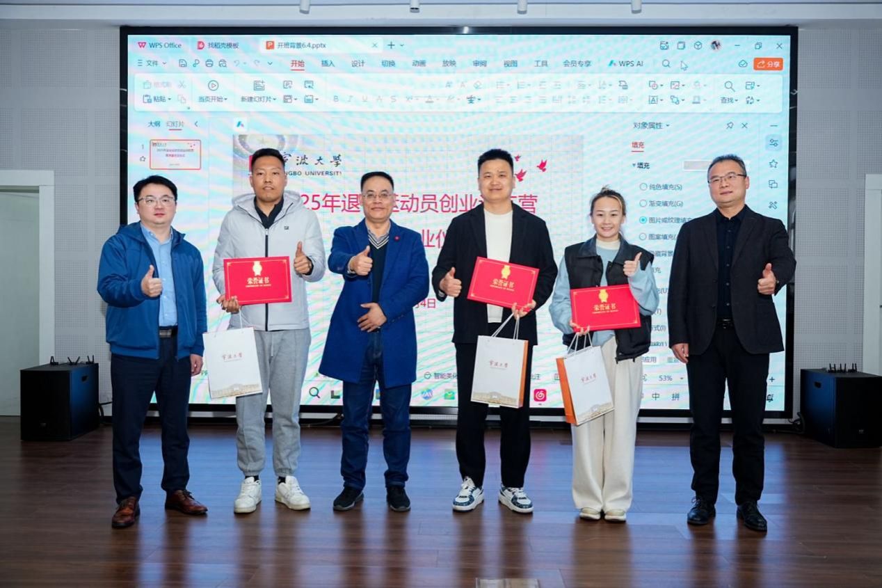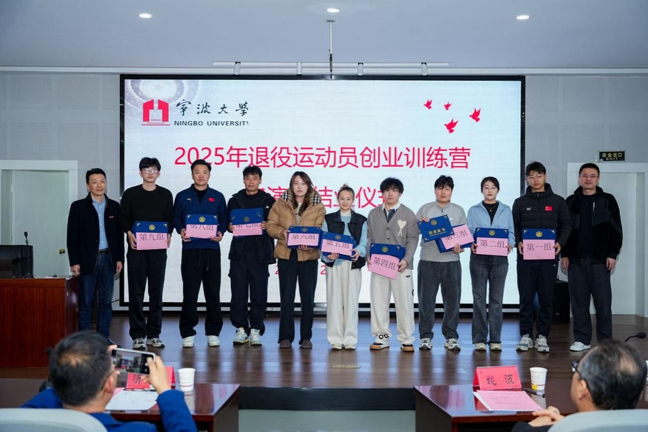 2025年12月4日,由国家体育总局体育基金管理中心主办,中华全国体育基金会资助,宁波大学承办的“2025年退役运动员创业训练营路演暨结业仪式”在宁波大学商学院成功举行。本次活动标志着为期十天的创业训练营正式收官,来自体育界的退役运动员们完成了从“赛场强者”到“创业新人”的华丽转身,在商业路演的舞台上展现了卓越的跨界潜力与创新活力。
