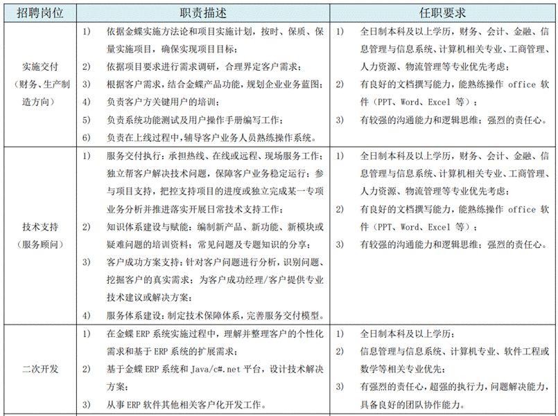 欢迎关注“金蝶招聘(ID:kingdeejob)”微信公众号,查看详细岗位信息。