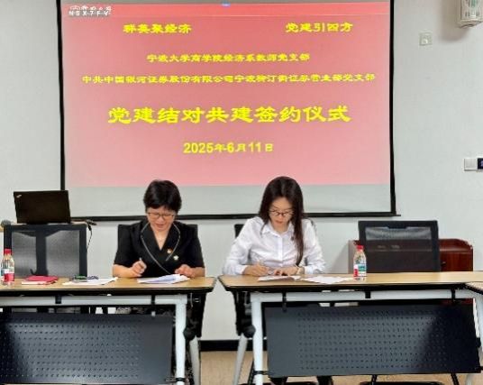 6月11日下午,商学院经济系教师党支部与中国银河证券宁波柳汀街证券营业部党支部在学院316会议室联合开展党建共建交流活动,双方党员围绕理论学习、业务融合、共建合作等主题展开深入探讨。
