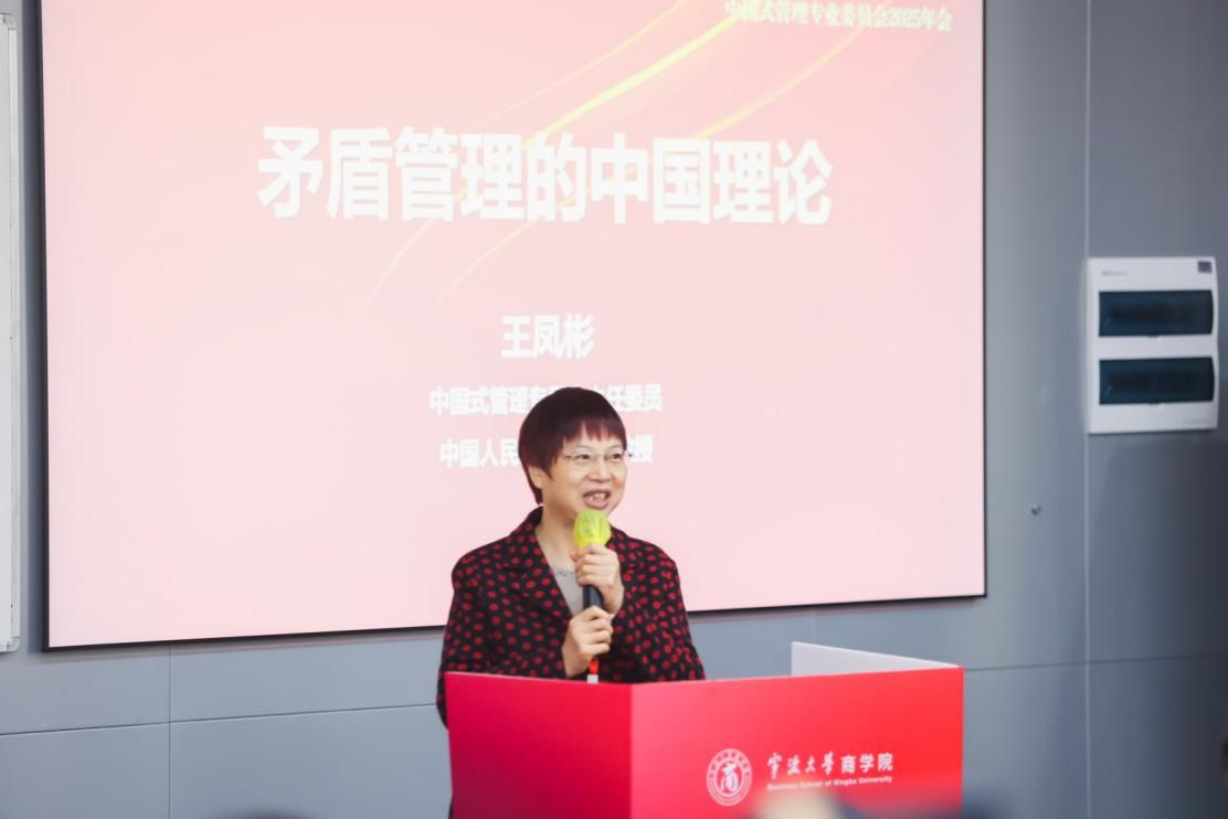 中国式管理专委会主任委员、中国人民大学商学院王凤彬教授围绕“矛盾管理的中国理论”系统阐述了理论构建路径。她辨析了矛盾与悖论的异同,提出矛盾是“既对立又统一”的辩证关系,并从国家、企业双层次展开案例分析。通过《中国式现代化的内在逻辑解析》及企业资源配置矛盾运动研究,她揭示了五行相克模型在解释企业可持续成长中的适用性,强调构建中国管理学自主知识体系需实现“哲学-科学-实践”三重融合。同时围绕会议主题介绍了前期对“企业境内外双循环的动态复合过程机理”的研究成果,对《十五五规划》提出的“做强国内大循环,畅通国内国际双循环”做了呼应。