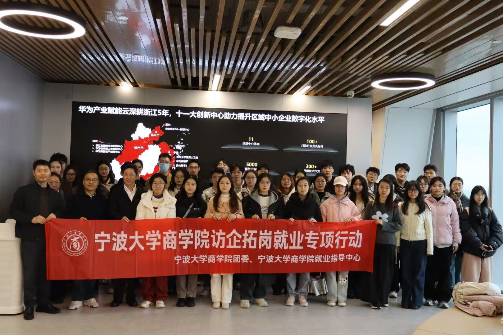 为深化产教融合、落实立德树人根本任务,推动人才培养与产业需求精准对接,12月12日下午,商学院党委书记史宏协、党委副书记吴敏、辅导员张婧及30余名学生赴华为终端业务部宁波总部开展访企拓岗专项活动,深入科技企业一线,解码华为创新体系与人才战略。