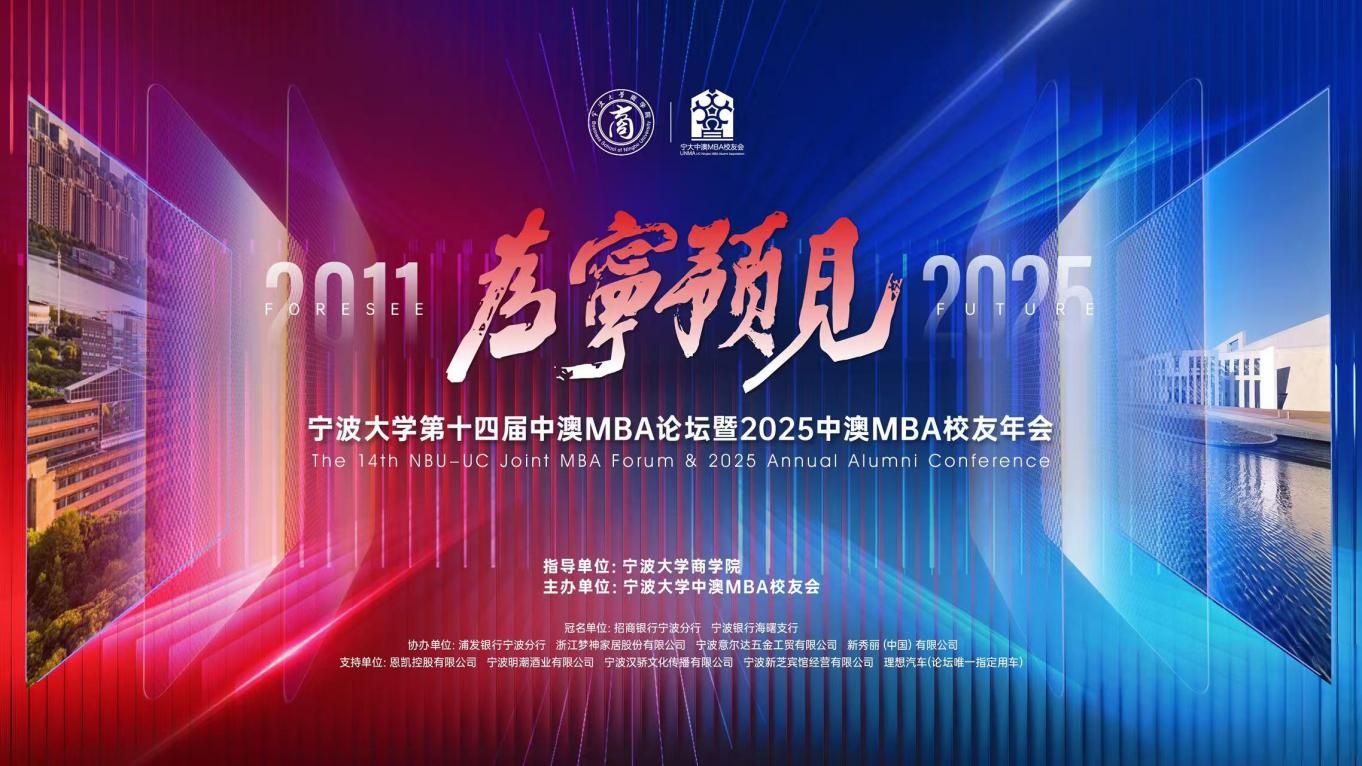 12月13日,“为宁预见”宁波大学第十四届中澳MBA论坛暨2025中澳MBA校友年会举行。活动由宁波大学商学院指导,宁波大学中澳MBA校友会主办。宁波大学党委书记张瑞丽、宁波大学党委副书记张真柱、宁波大学校友会会长聂秋华、宁波大学校友会顾问叶飞帆、宁波大学校友会副会长冯志敏、浙江省原发改委副主任谢晓波、长阳科技董事长兼宁波市北京大学校友会会长金亚东、创合汇资本管理合伙人王一、新芝生物董事长兼宁波浙江大学校友会副会长周芳,宁波市人大常委会预算工作委员会主任竺培楠,美康生物董事长邹炳德、招商银行宁波分行行长袁森等出席。论坛由宁波大学商学院院长周新苗主持。活动特邀国家发展改革委原秘书长、湖南省委原常委、副省长、国务院参事室特约研究员、中国国际经济交流中心原副理事长韩永文,与近400名校友及嘉宾欢聚一堂,共同庆祝中澳MBA校友会年度盛会。