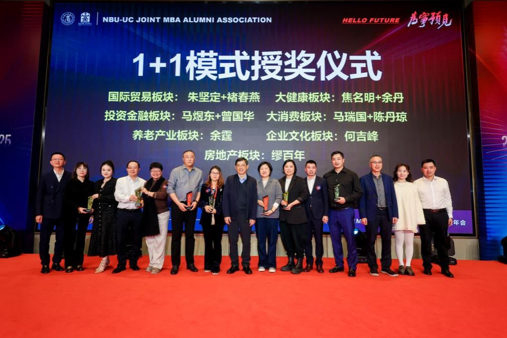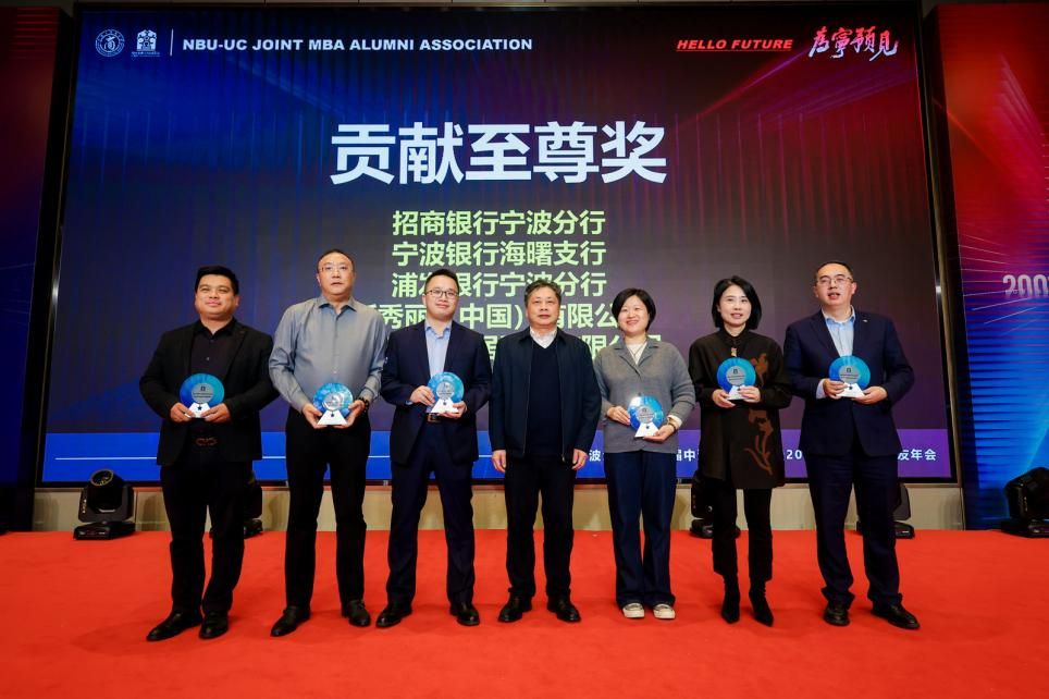 隆重的表彰环节依次进行,“伯乐奖”“贡献至尊奖”“贡献卓越奖”“贡献先进奖”“笃行领航奖”“薪火传承奖”等一系列荣誉实至名归,见证了校友们的卓越贡献与深情厚谊。与此同时,宁波大学各兄弟校友会、宁波各商会和协会代表等亦同心致贺,携满载情谊的贺礼与真挚祝福奔赴而来,共襄盛事。最后,在经久不息的热烈掌声与充满感染力的现场歌声中,年会圆满落下帷幕。