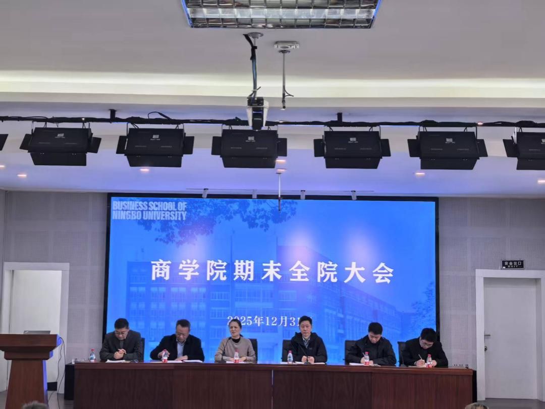 2025年12月31日下午,商学院在曹光彪楼501报告厅召开2025年秋季学期末全院大会暨述德述责述廉述法大会。学院领导班子全体成员与全院教职工齐聚一堂,共同回顾过去一年的奋斗历程,展望新阶段的发展蓝图。大会由院党委书记史宏协主持。