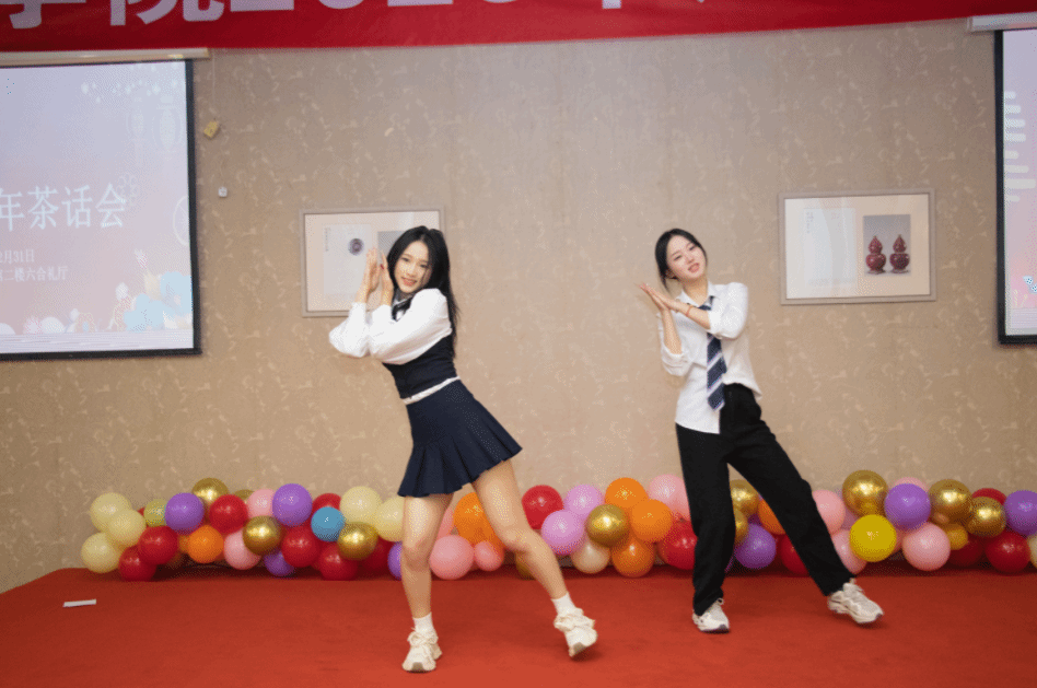 本次茶话会由朱福建、宋辉、王晶晶三人联袂主持,现场氛围热烈非凡。会上精心筹备了十多个精彩纷呈的文艺节目,涵盖合唱、朗诵、歌舞、脱口秀,还有趣味十足的最默契夫妻互动、谐音挑战游戏以及歌曲联唱等。这些节目均由学院教职工精心设计、认真排练,节目兼具观赏性和趣味性,引得现场观众掌声、喝彩声此起彼伏。