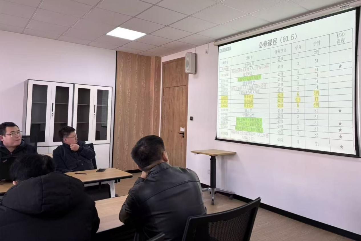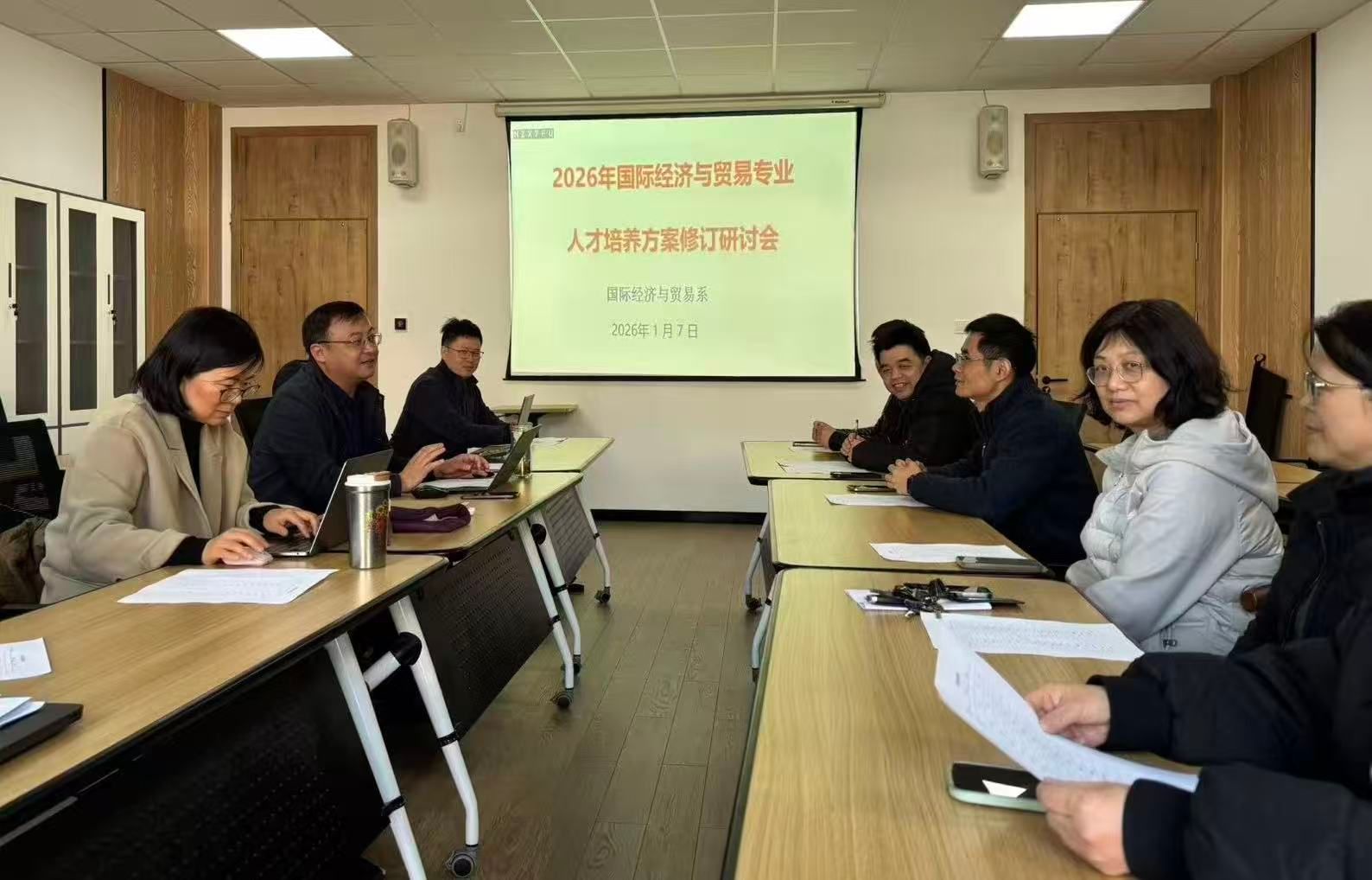 2026年1月7日,商学院国际经济与贸易系在学院研讨会320室,组织召开了2026版国际经济与贸易专业人才培养方案修订(第二次)专题研讨会。本次会议在前期研讨基础上,进一步聚焦专业发展方向与课程体系优化,旨在深化对数字经济时代人才需求变化的回应,扎实推进专业升级与人才培养质量提升。