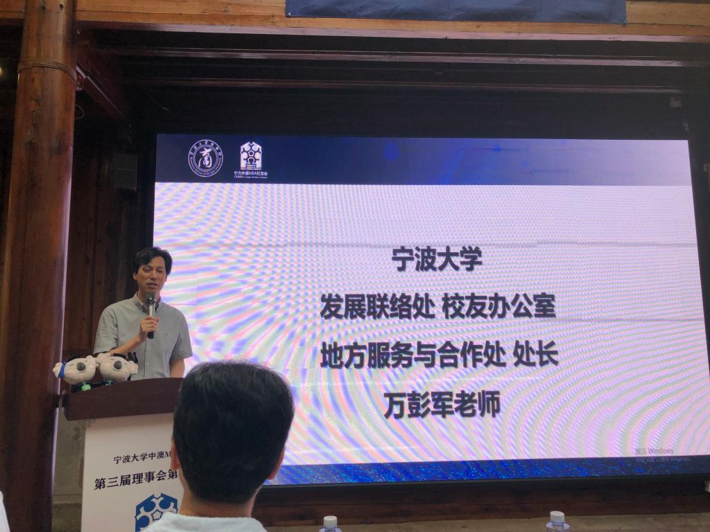 下午4点,会议进入正式议题。万彭军处长首先代表学校向现场的校友们介绍了学校的最新发展情况。我校自2017年成为“双一流国家建设高校”以来,近几年取得较快发展,在全国高校排名进一步提升,同时,在办学空间、教育经费、科研项目,以及绩效收入等四个方面均实现了“翻一番”。在主要科研指标、高层次人才引进、科研团队建设以及“双一流”经济评估等工作方面取得了较好的成绩。万处长指出,“双一流”大学的工作建设离不开高质量、高水平的校友工作。宁波大学目前已组建了60多个校友会,其中包括4个国外校友会以及含中澳MBA校友会在内的4个地方或行业特色校友会。今年9月,校友办计划通过中澳MBA校友会的平台基础,进一步拓展建设宁波大学的澳洲校友会,届时可将宁波大学的地方校友会、全国的宁波商会,以及宁波大学三方的力量结合起来,实现资源共享,共谋发展。讲话中,他也对新一届的中澳MBA校友会提出共勉共进的三点希望与要求,希望他们担当新使命,构建新格局,进一步凝聚和发挥校友之力,为校友成长发展提供帮助与支持;通过积极探索产学研合作等新模式,实现校友与学校的互利共赢,共同发展。