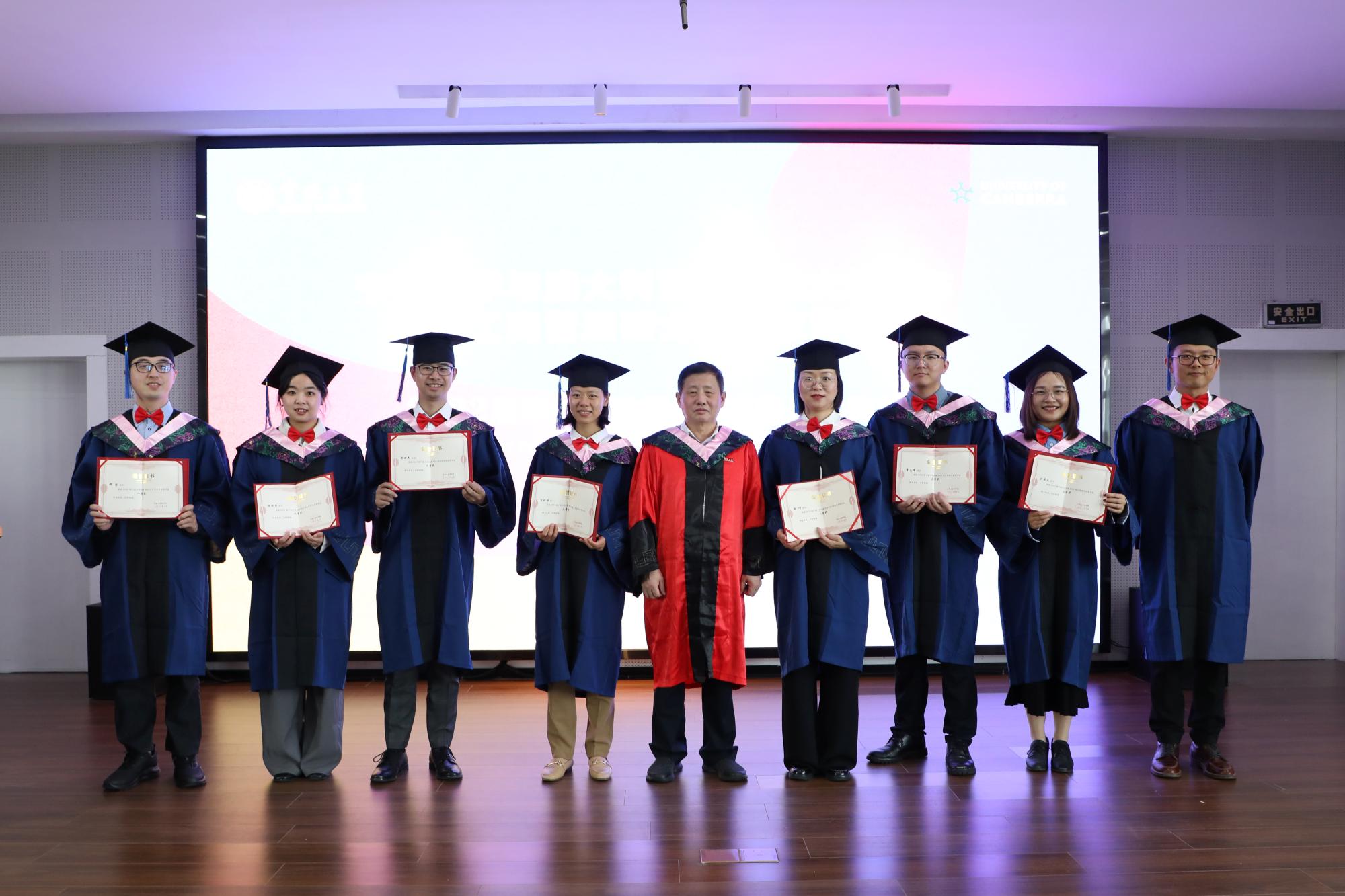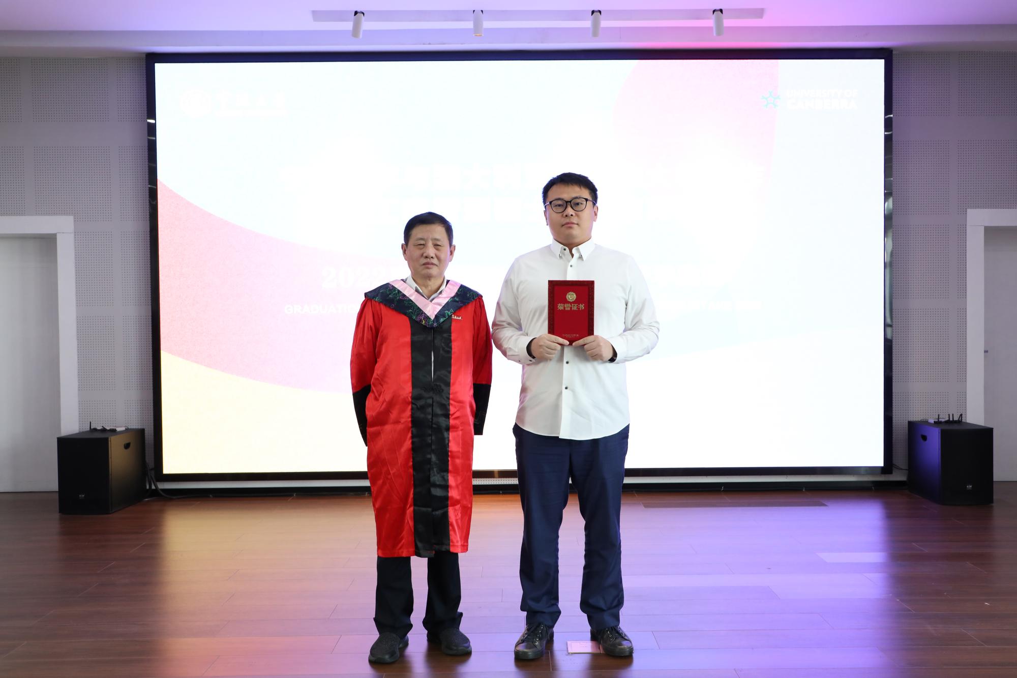 接着,学院党委书记史宏协宣布2022届毕业生名单,院长和书记分别为毕业生颁发了澳大利亚堪培拉大学的工商管理硕士学位证书和宁波大学商学院学习经历证明。